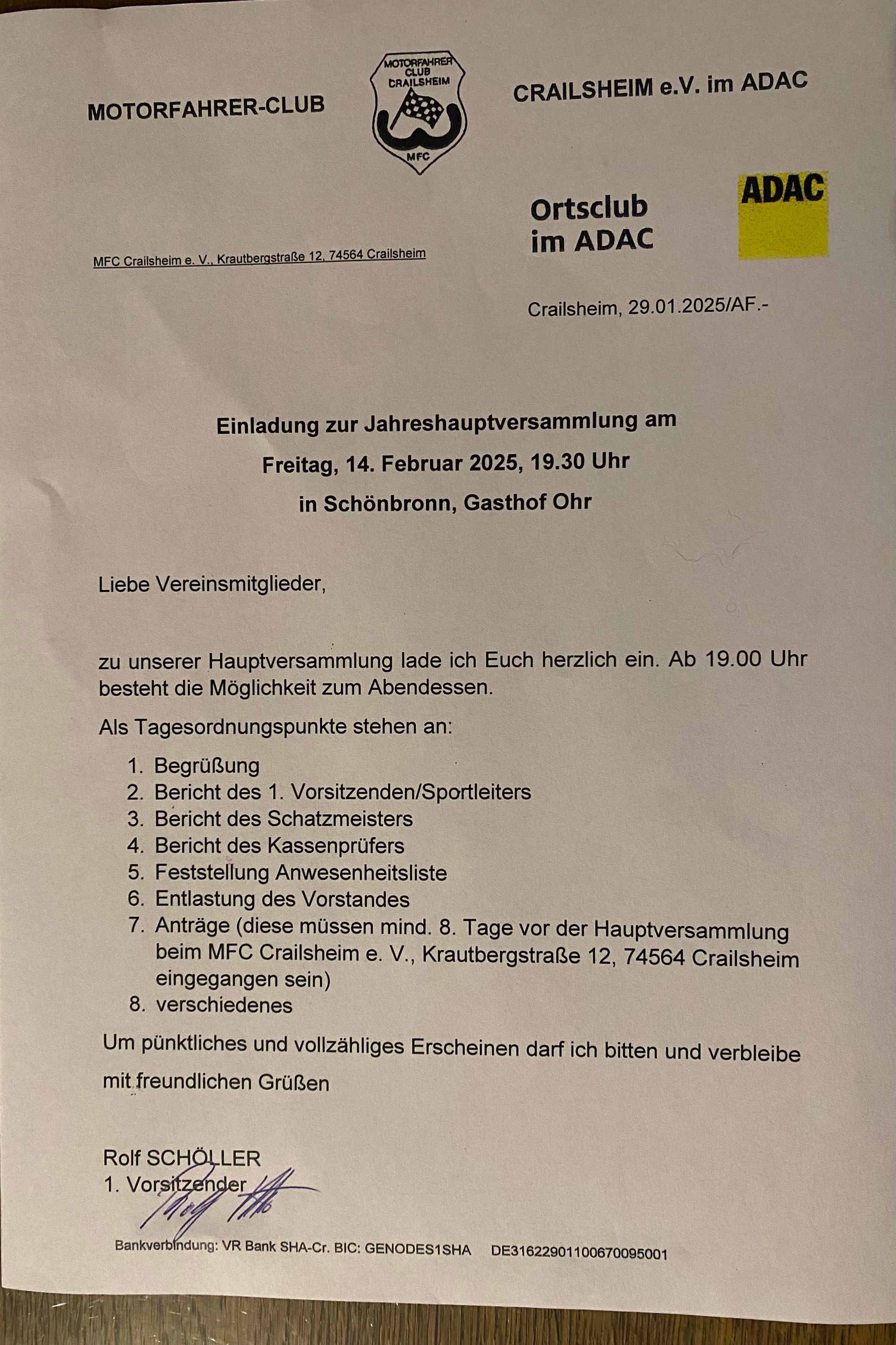 Leider musste der MFC Crailsheim diese Veranstaltung anhand der Corona Verordnung abermals absagen.